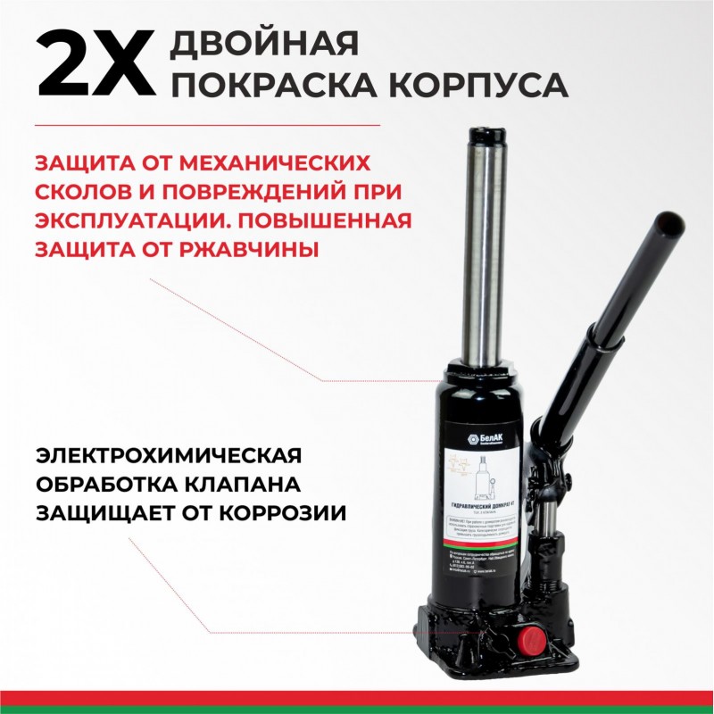 Домкрат гидравлический БелАК (TUV, 2 клапана) 4 т.