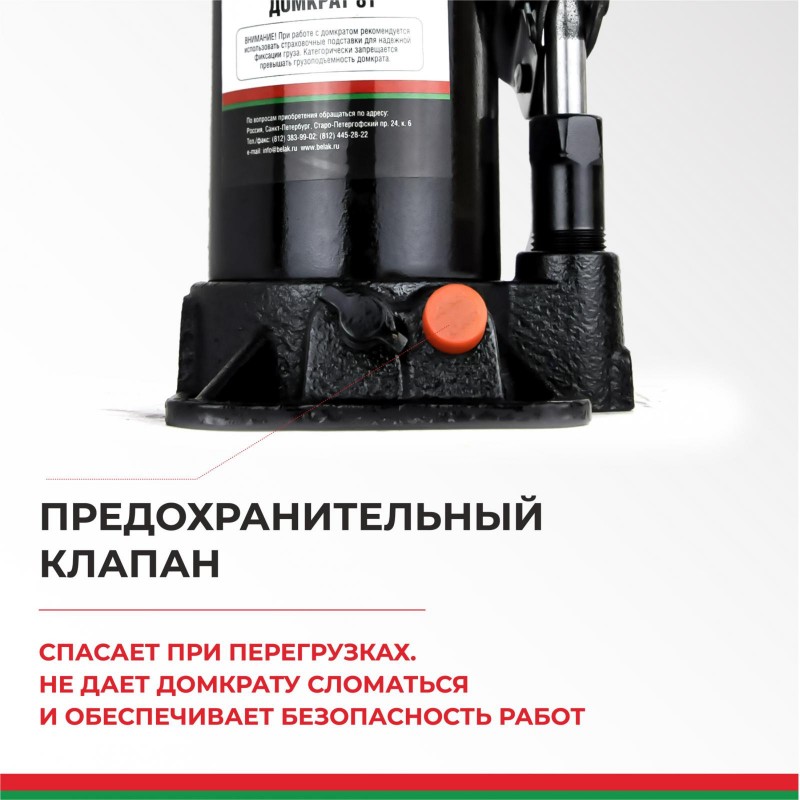 Домкрат гидравлический БелАК (TUV, 2 клапана) 8 т.