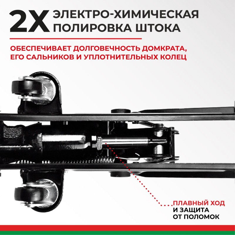 По внешнему виду гидравлический подкатной домкрат (2 т) напоминает узкую тележку, снабжённую стальными колёсами. Это приспособление имеет специальную грузовую площадку, длинную съёмную ручку/рычаг с фиксатором наклона, может оснащаться подъёмной педалью и переключателем режимов вверх/вниз. Грузовая подъёмная площадка совмещена с гидравлическим цилиндром. После нажатия на приводной рычаг начинает работать поршневой насос, повышающий давление в гидроцилиндре.