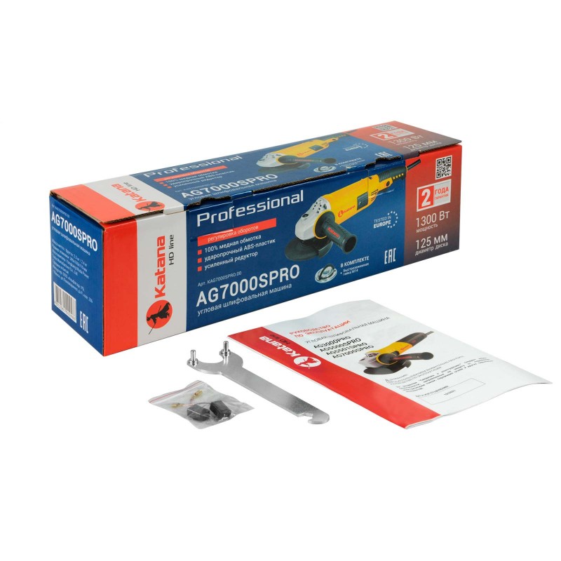 Углошлифмашина одноручная KATANA HD line AG7000S PRO(1300Вт,SDS кожух,SDS гайка, рег.об)