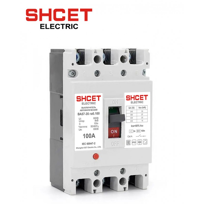 Автоматические выключатели серии ВА57-35 габ.100 предназначены для проведения тока в нормальном режиме и отключения тока при коротких замыканиях, перегрузке, недопустимых снижениях напряжения, а также для оперативных включений и отключений участков электрических цепей 50/60Гц и рассчитаны для эксплуатации в электроустановках с номинальным рабочим напряжением до 400В и на номинальные токи от 16 до 100А. Полный набор аксессуаров позволяет использовать автоматические выключатели в современных автоматизированных системах управления и электроснабжения.