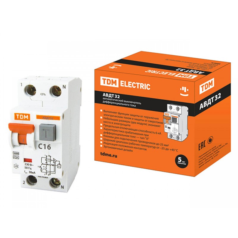 Выключатель дифференциальный автоматич. АВДТ-32 C16 30мА тип А TDM