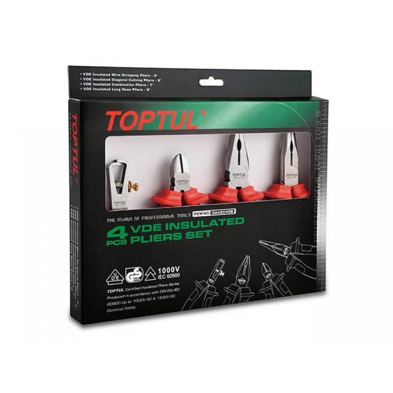Набор бокорезы, плоскогубцы, тонкогубцы, клещи 4пр. диэлектрические TOPTUL