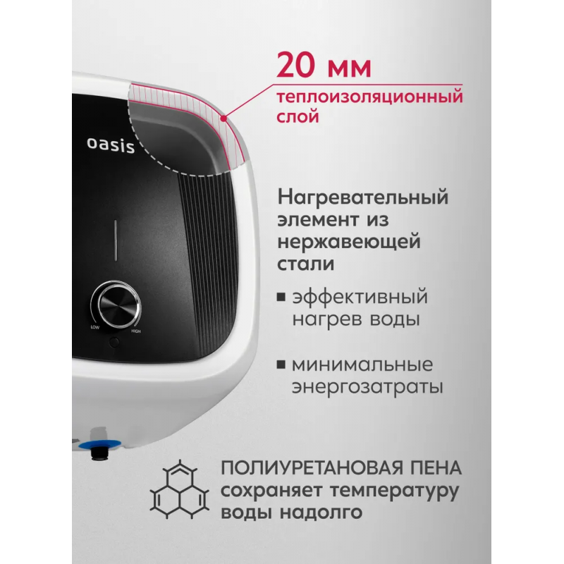 Водонагреватель накопит. Oasis Eco BF-30 (нерж. ТЭН, 1500Вт, 30л, быстрый нагрев, эмаль