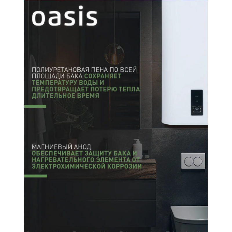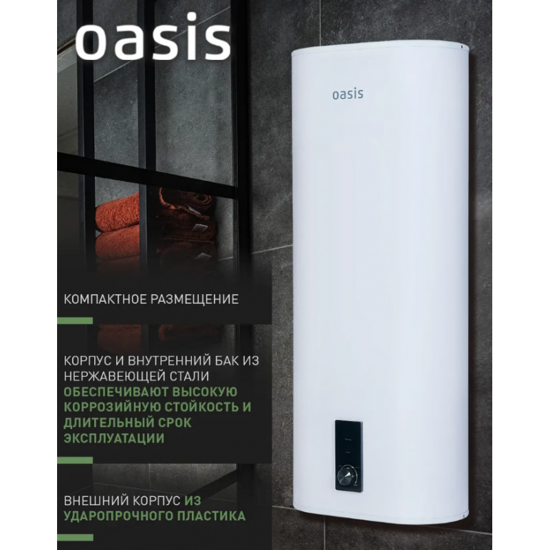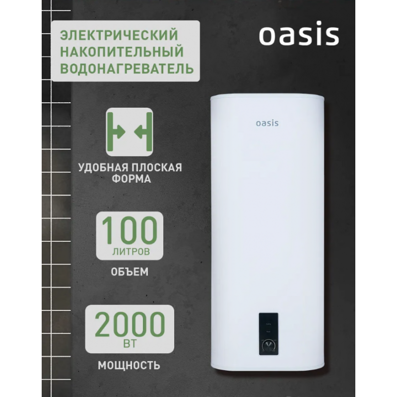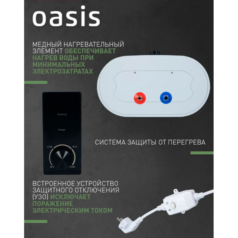 Водонагреватель накопит. Oasis 100R (2кВт, 100л, медный ТЭН, дисплей, верт, УЗО, антиза