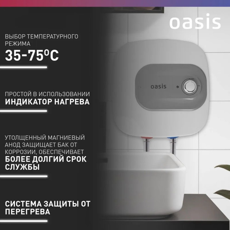 Водонагреватель накопит. Oasis 10 KP (1,5кВт, 10л, 8бар, эмаль, клапан, до 48ч, верхнее подключ.)