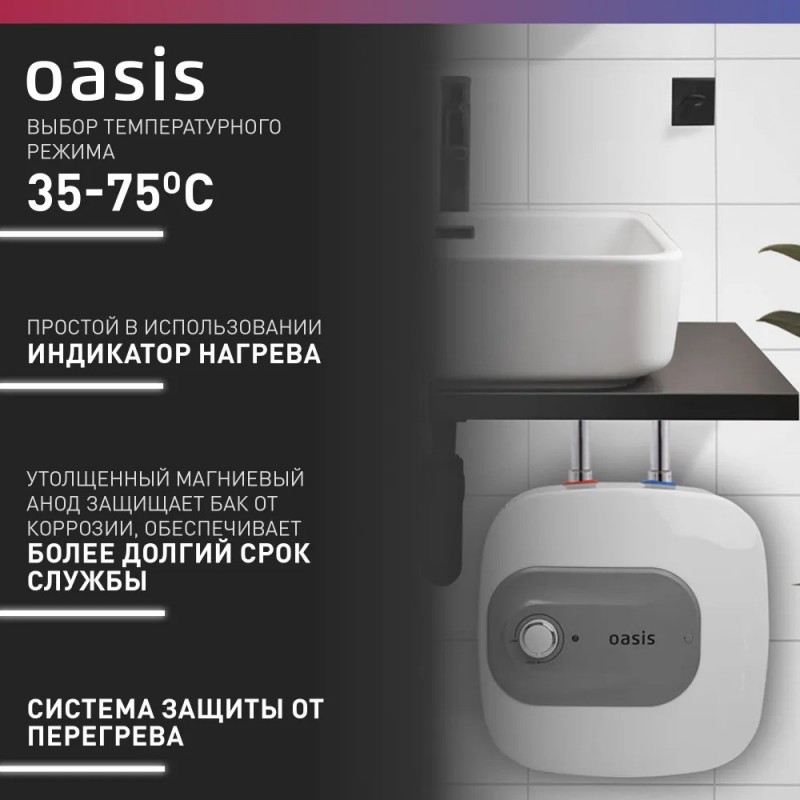 Водонагреватель накопит. Oasis 15 KP (1,5кВт, 15л, 8бар, эмаль, клапан, до 48ч, верхнее подключ.)