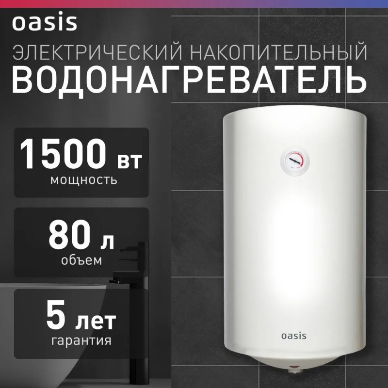 Водонагреватель накопит. Oasis VL-80L (1500Вт, 80л, УЗО, медный ТЭН, до 48ч, предохр. клапан, эмаль)