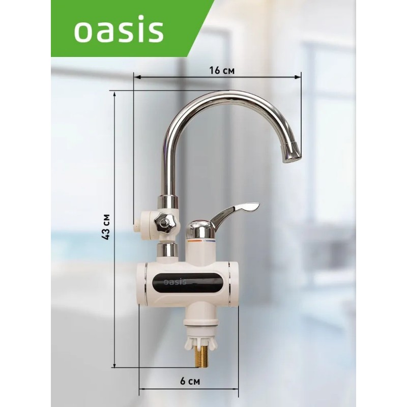 Электрический проточный водонагреватель Oasis EP-3 - это отличное решение при отсутствии централизованной горячей воды. Подобный смеситель-водонагреватель станет отличным приобретением для дачи, квартиры, загородного дома. Он имеет стильный и современный дизайн, практически не отличается от обычного крана и его легко установить самостоятельно.