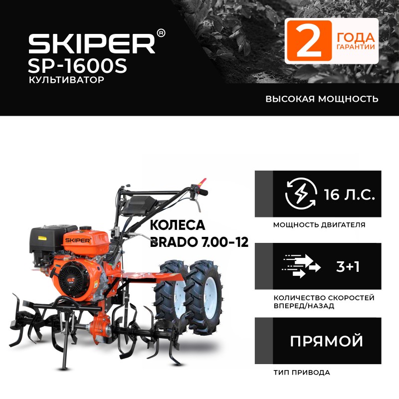 Культиватор SKIPER SP-1600S + колеса BRADO 7.00-12 (комплект)