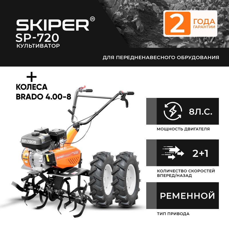 Культиватор SKIPER SP-720 + колеса BRADO 4.00-8 (комплект)