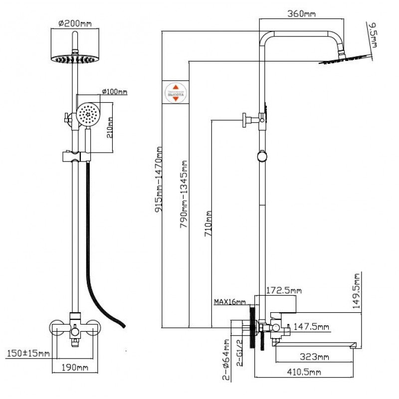 Смеситель (душевая стойка) настенный из нержавеющей стали для ванной комнаты "Oasis" SUS2000MSt_Car