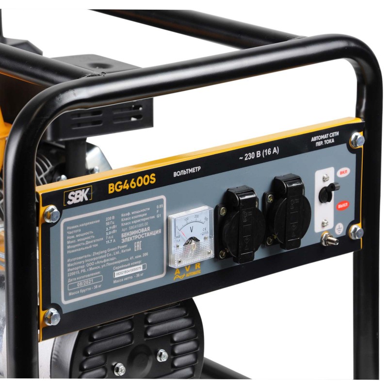 Электростанция SBK BG4600S (3.0кВт, 2х230В/16А/2.7кВт, бак 3.6л)